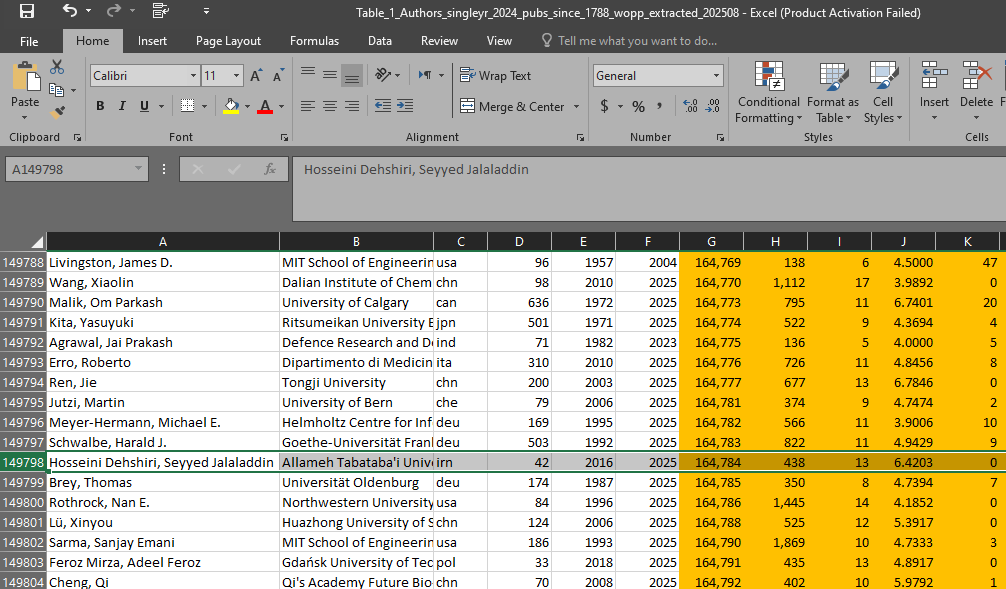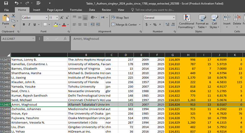 بر اساس این گزارش که در تاریخ 19 سپتامبر 2025 در مجله PLOS به چاپ رسیده، دو مدل پایگاه داده ارائه شده است. ارزیابی بر پایه مدل اول تا پایان سال 2024 که نمایانگر شاخص عملکرد بلندمدت پژوهشگران پیشکسوت است و ارزیابی بر پایه مدل دوم که بر اساس دادههای یکساله ۲۰۲۱ است.